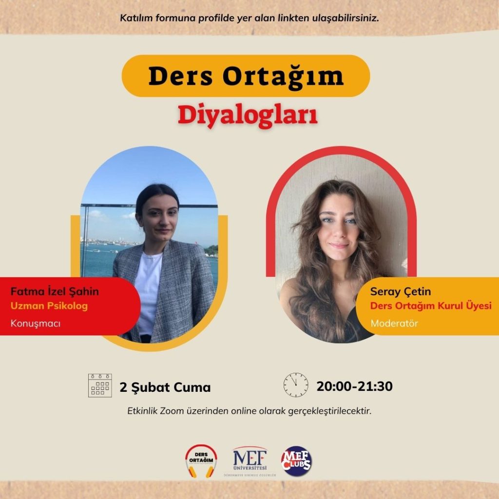 “Ders Ortağım Diyalogları” serimizin ilk bölümünde, Parıltı Görmeyen Çocuklara Destek Derneği’nden Uzman Psikolog Fatma İzel Şahin’i ağırladık. 2020 yılında İstanbul 29 Mayıs Üniversitesi Psikoloji Bölümü’nden mezun olan ve ardından Maltepe Üniversitesi’nde Gelişim Psikolojisi alanında yüksek lisansını tamamlayan Fatma İzel Şahin, Bilişsel Davranışçı Terapi, Kısa Süreli Çözüm Odaklı Terapi, Enneagram, Objektif Testler ve Aile Danışmanlığı gibi […]